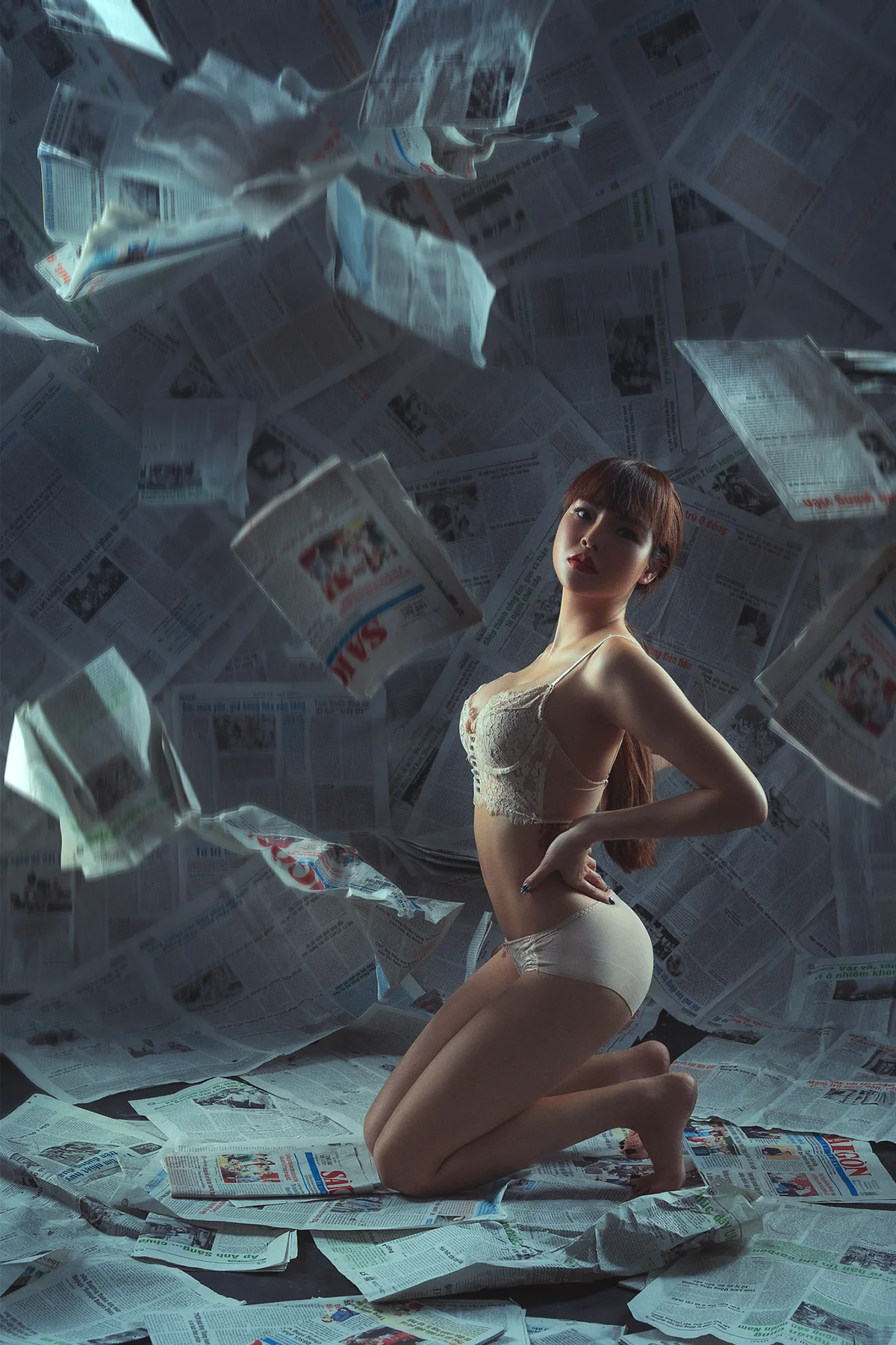 In a series of intense, captivating photographs, the concept of “No News Less Trading” is brought to life. This phrase encapsulates the palpable tension that builds in financial markets when information flow slows or stops. With the lens focused on a woman wrapped tightly in newspapers, her expression marked by frustration and desperation, the photos convey a powerful message: without fresh news, the world of trading grinds to a halt.