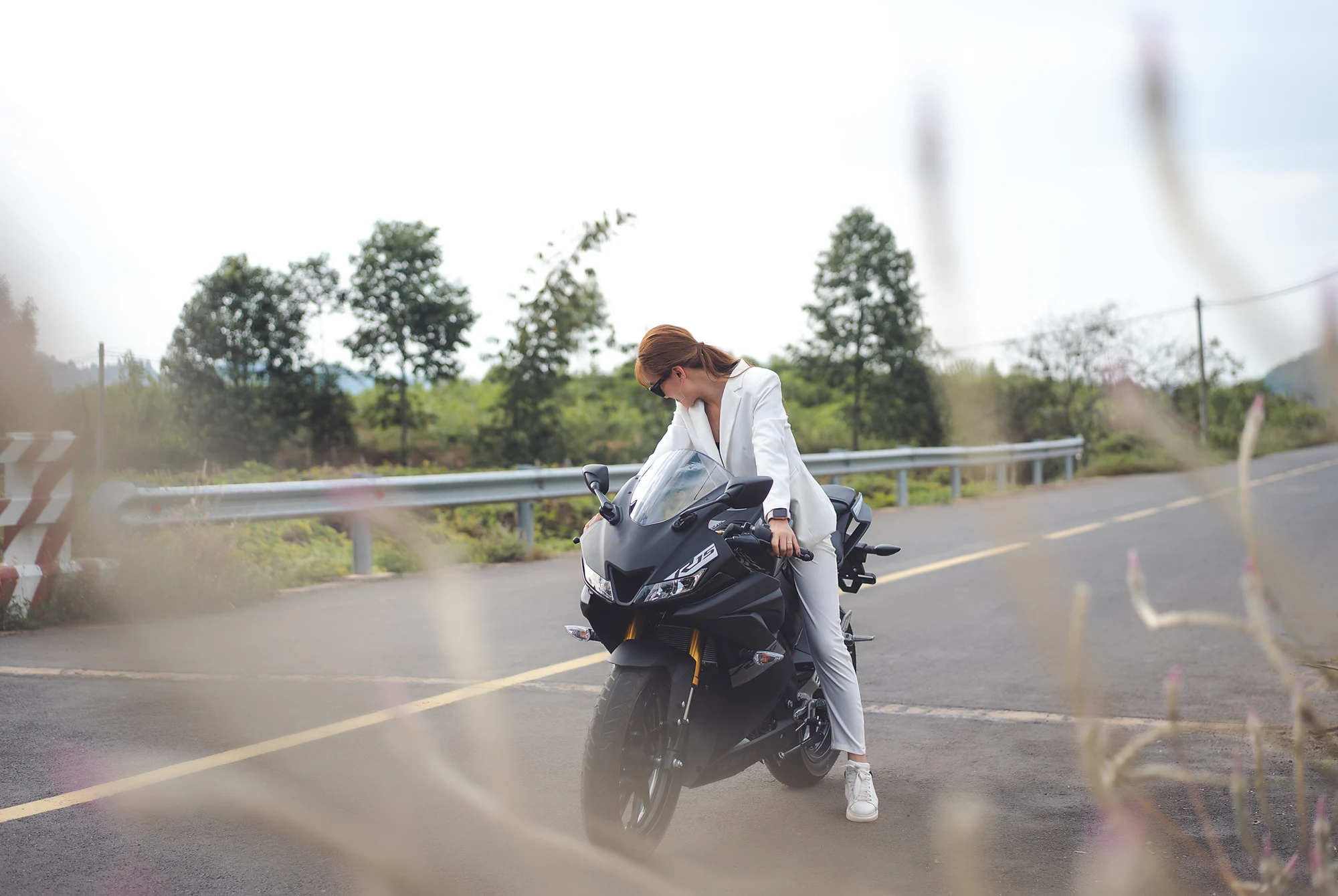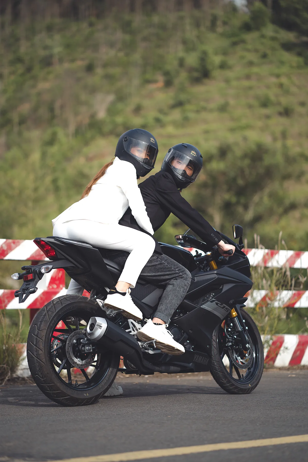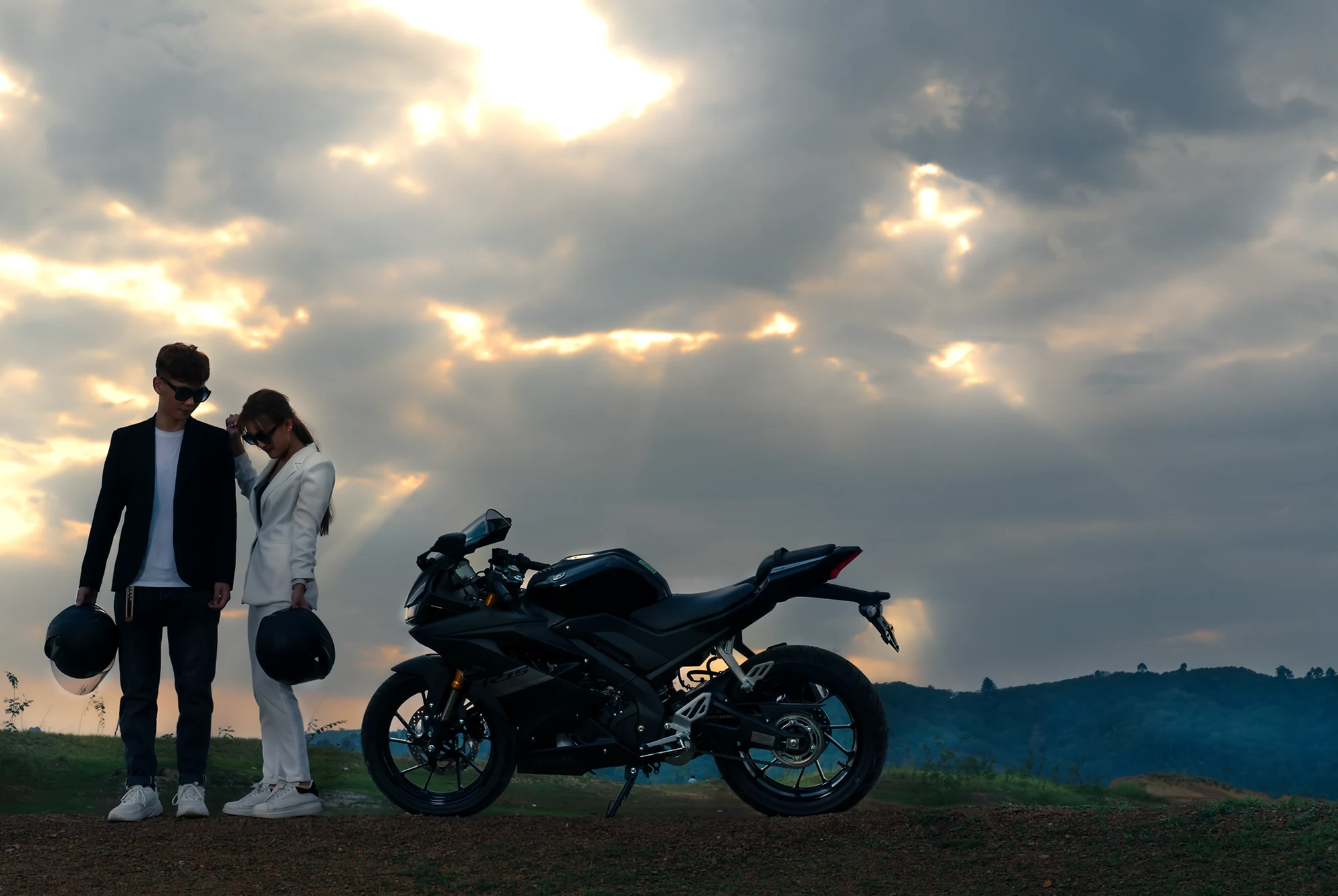 Một chiếc moto màu đen lôi cuốn, là nguồn cảm hứng chính cho bộ ảnh cưới chụp cùng moto này. Cặp đôi, mặc trang phục màu đen và trắng, không chỉ tạo nên sự đồng điệu với chiếc moto màu đen mà còn tôn lên vẻ sang trọng lạ mắt.