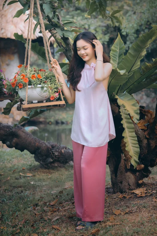 Biến thể áo yếm – trang phục quen thuộc của người phụ nữ Việt xưa – gắn liền với hình ảnh mộc mạc, giản dị của người phụ nữ nông thôn. Áo yếm, với kiểu dáng ôm sát, hai dây buộc qua cổ và hở lưng, mang đến vẻ đẹp gợi cảm mà kín đáo, tôn lên nét quyến rũ tự nhiên của người phụ nữ.
