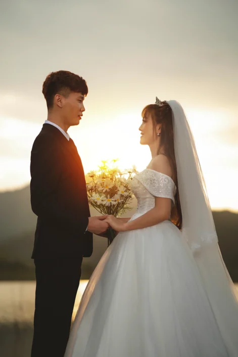 Chụp được bộ ảnh đẹp đón bình minh là ghi lại những quý giá của khoảnh khắc thiên nhiên mặt trời vừa ló dạng. Lứa đôi cùng đón bình minh là tận hưởng sự tinh khôi và tràn ngập năng lượng ngày mới. Mỗi giọt sáng vàng như những viên ngọc nhỏ treo lủng lẳng trên cỏ, tạo nên một bức tranh thiên nhiên tuyệt vời, thức tỉnh từ giấc ngủ dài của đêm.