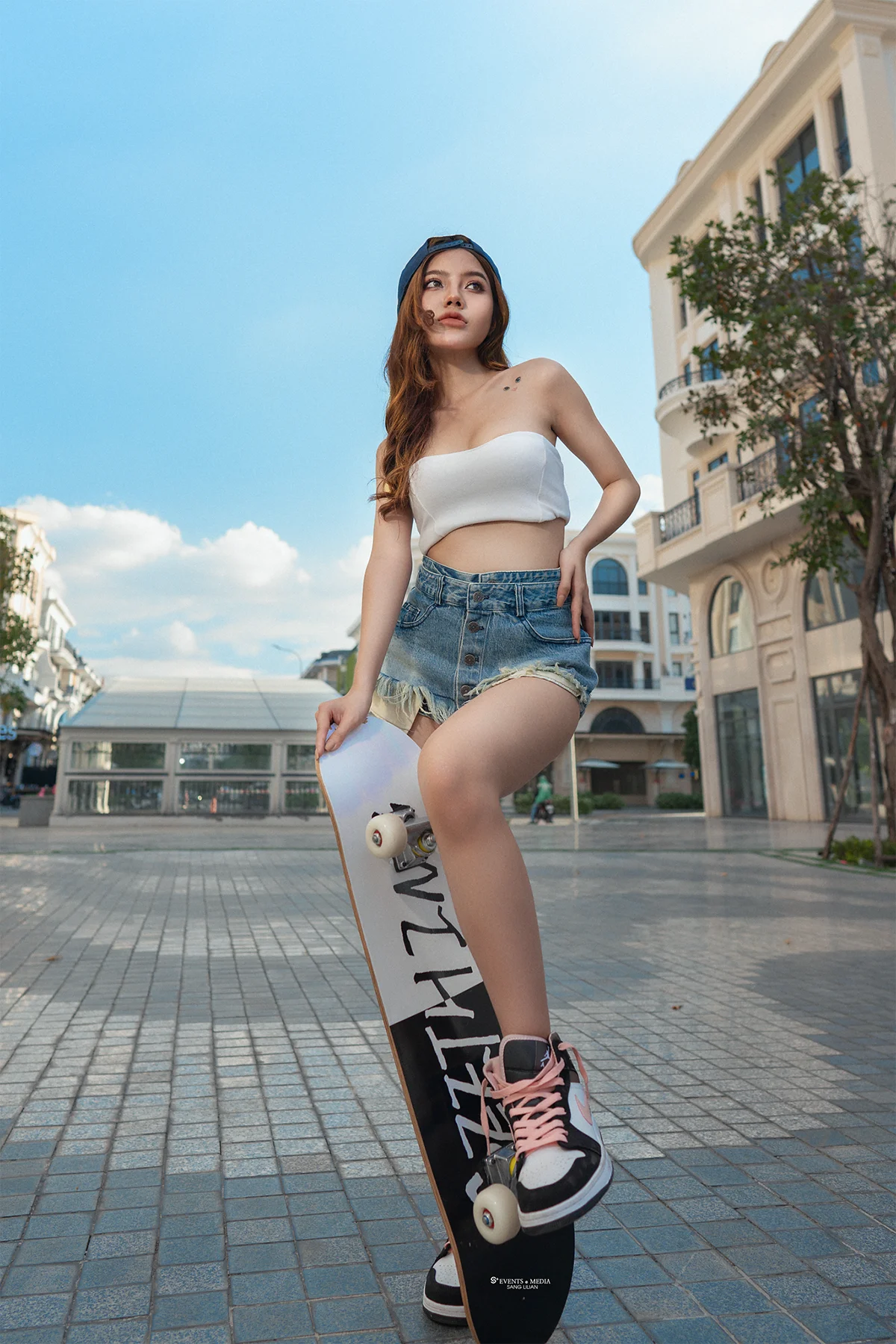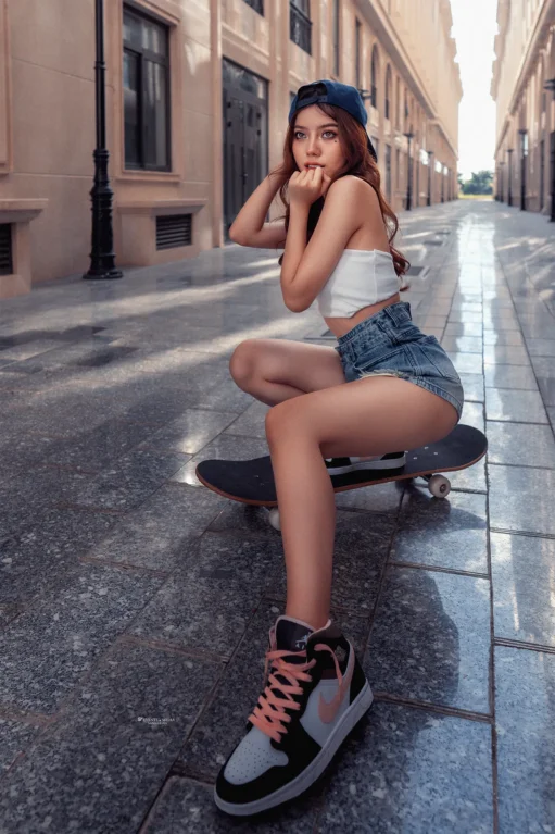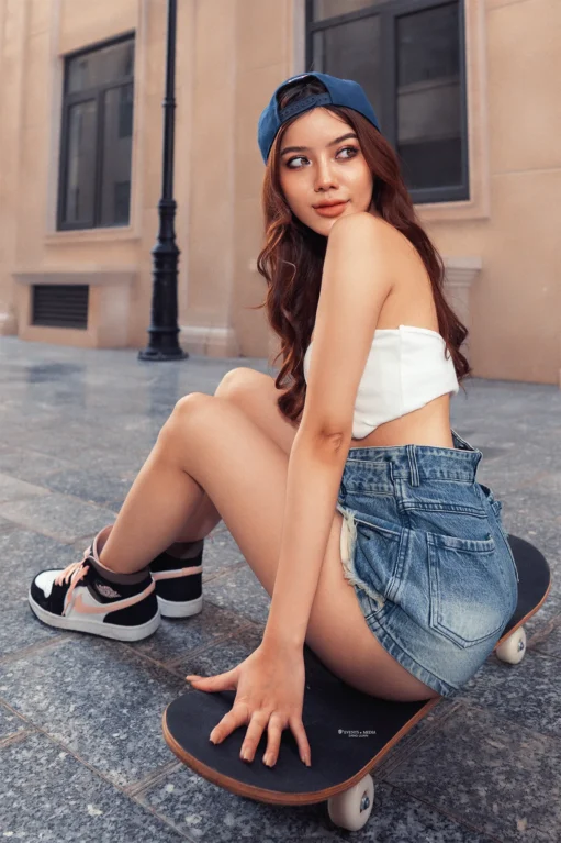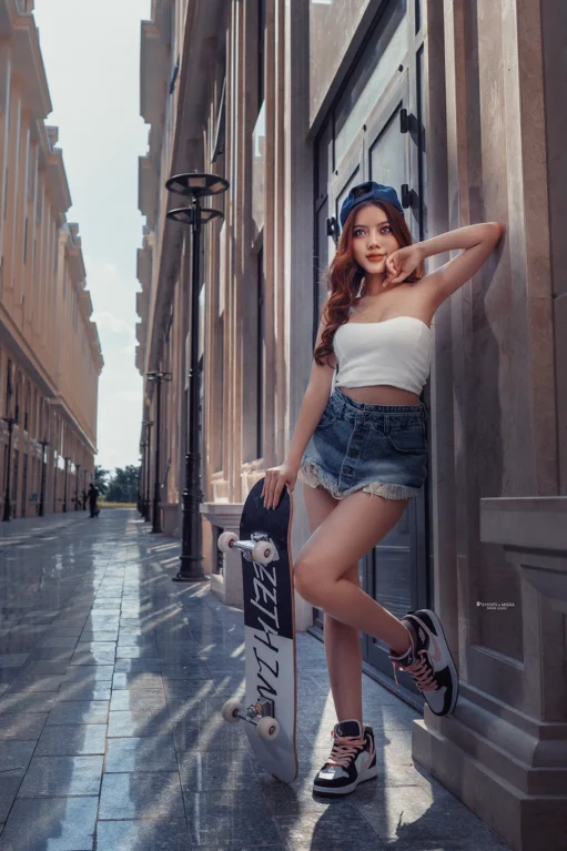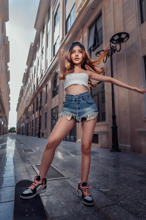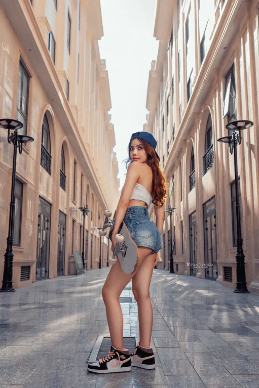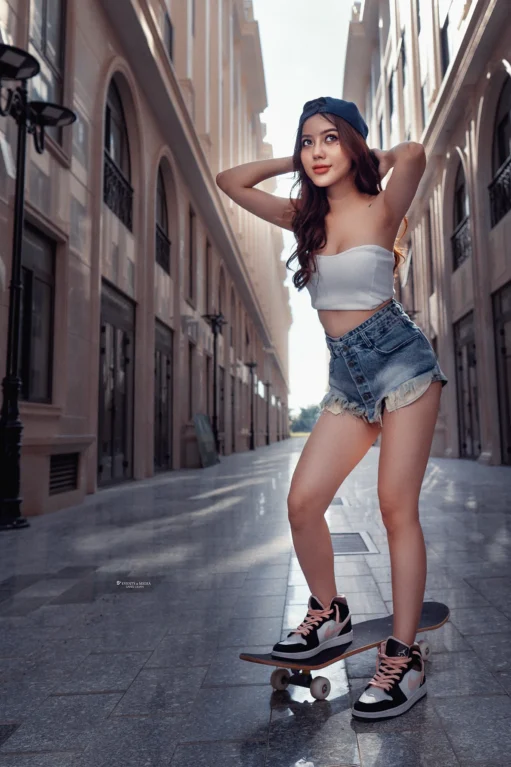 Một cô gái, với đôi chân mạnh mẽ và tinh thần phiêu lưu, mở đầu cho hành trình trượt ván đường phố của mình. Bạn có thể thấy cô ấy xuất hiện trên những con đường với những bước trượt mềm mại, nhưng đầy cá tính. Chiếc ván trượt không chỉ là phương tiện, mà còn là biểu tượng thể hiện cái tôi mạnh mẽ và năng động của cô gái này.