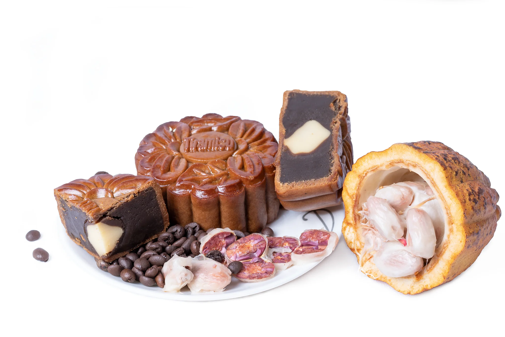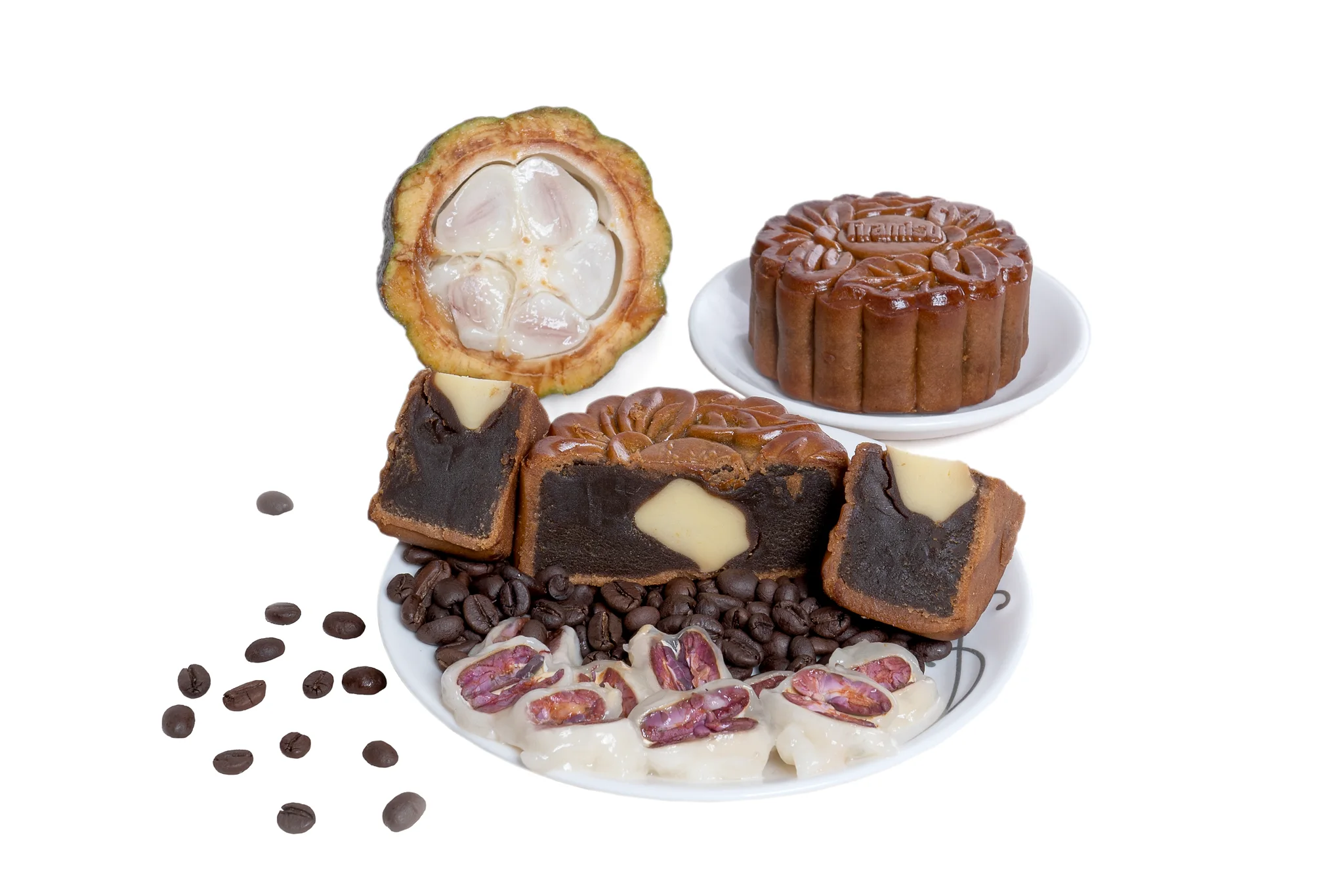 When we think of mooncakes, traditional flavors like mung bean, salted egg yolk, or lotus seed often come to mind. However, with modern culinary trends and creativity, cocoa has been skillfully incorporated by producers to create a new and unique line of mooncakes — the cocoa mooncake.