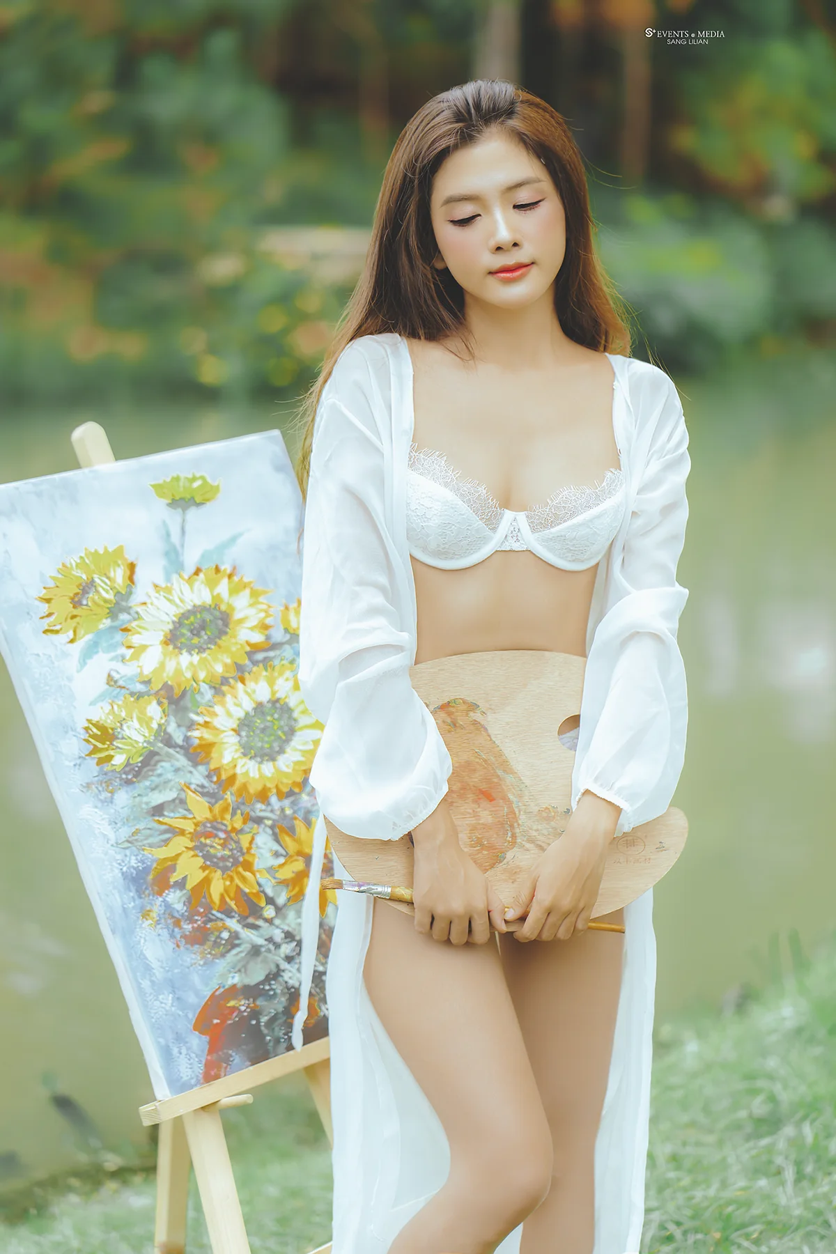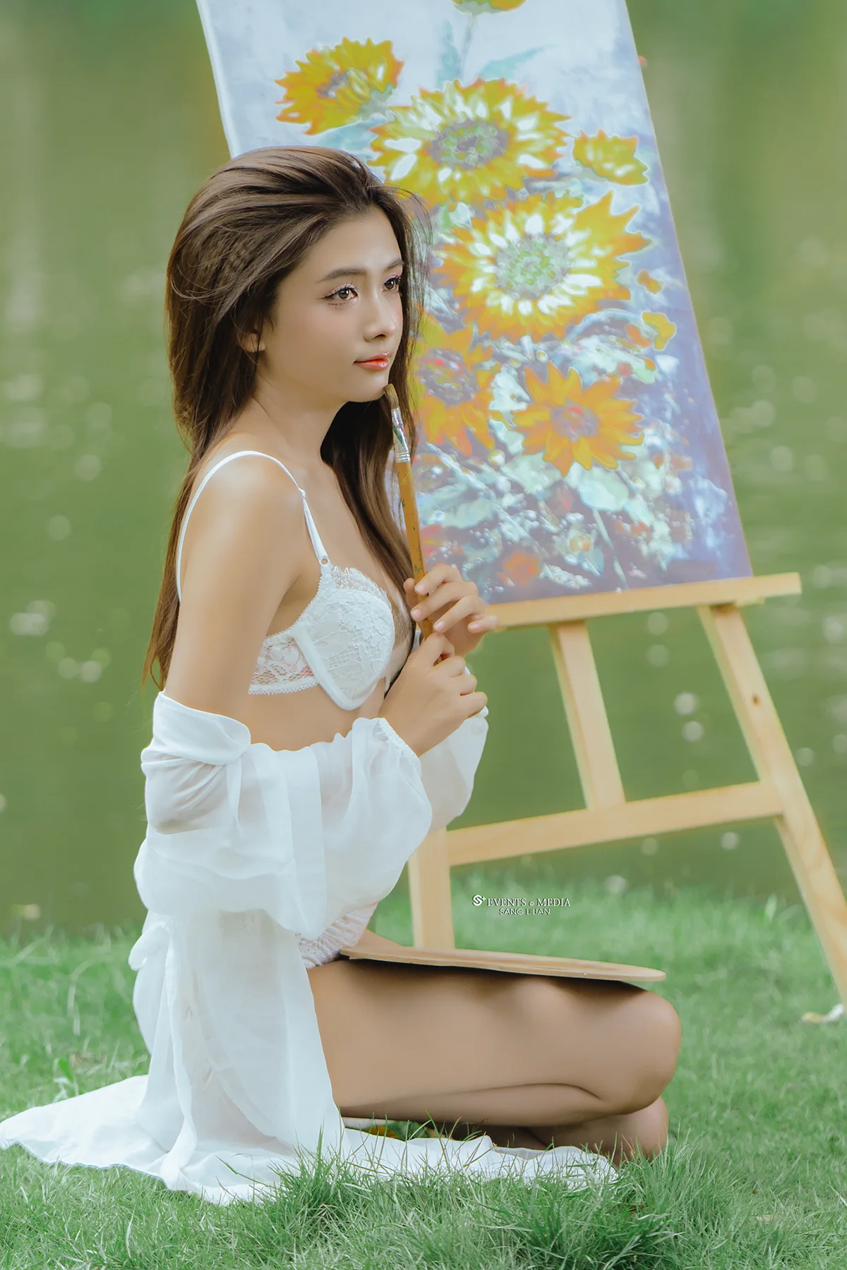 @sang_media Nữ hoạ sỹ vẽ tranh bên hồ #xuhuongtiktok2024 #giaitri ♬ nhạc nền – Sang Lilian