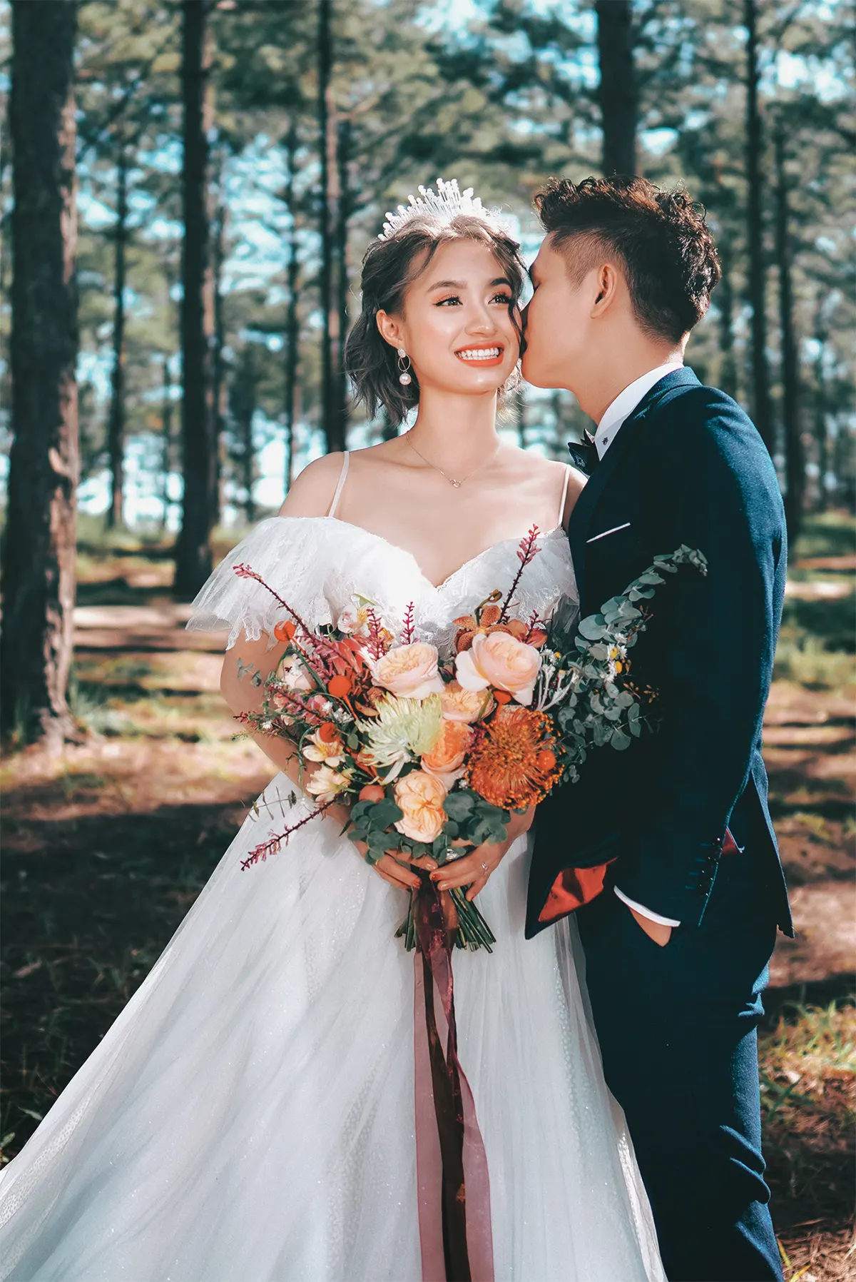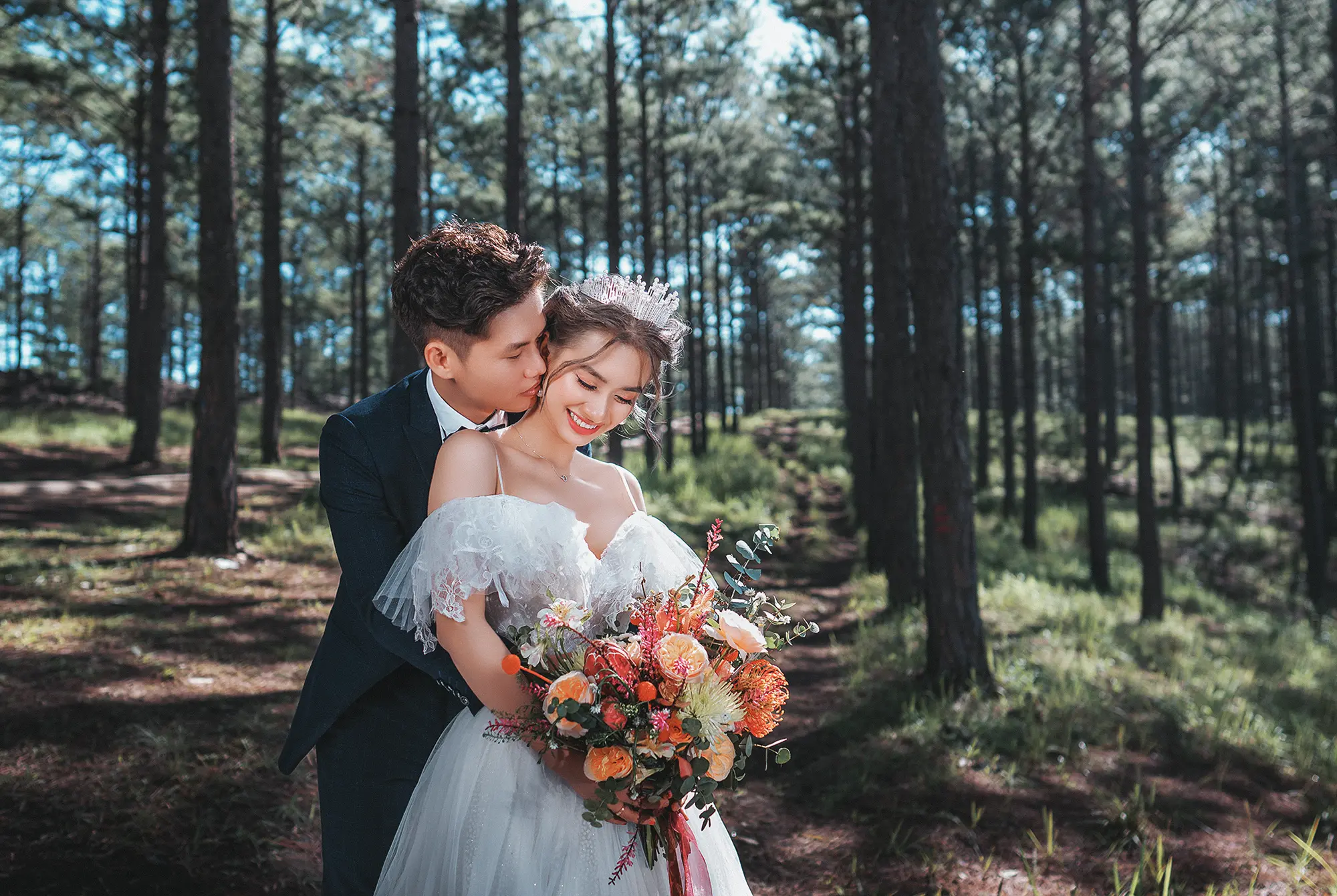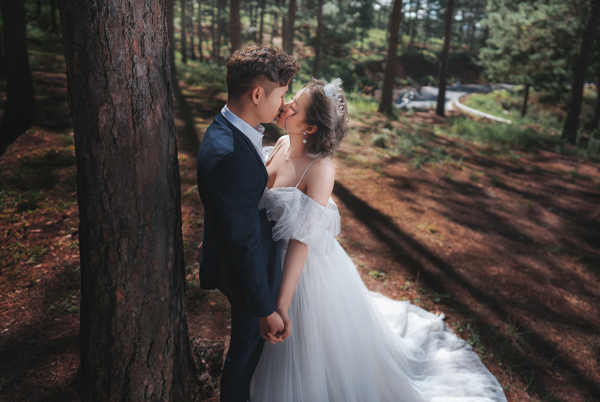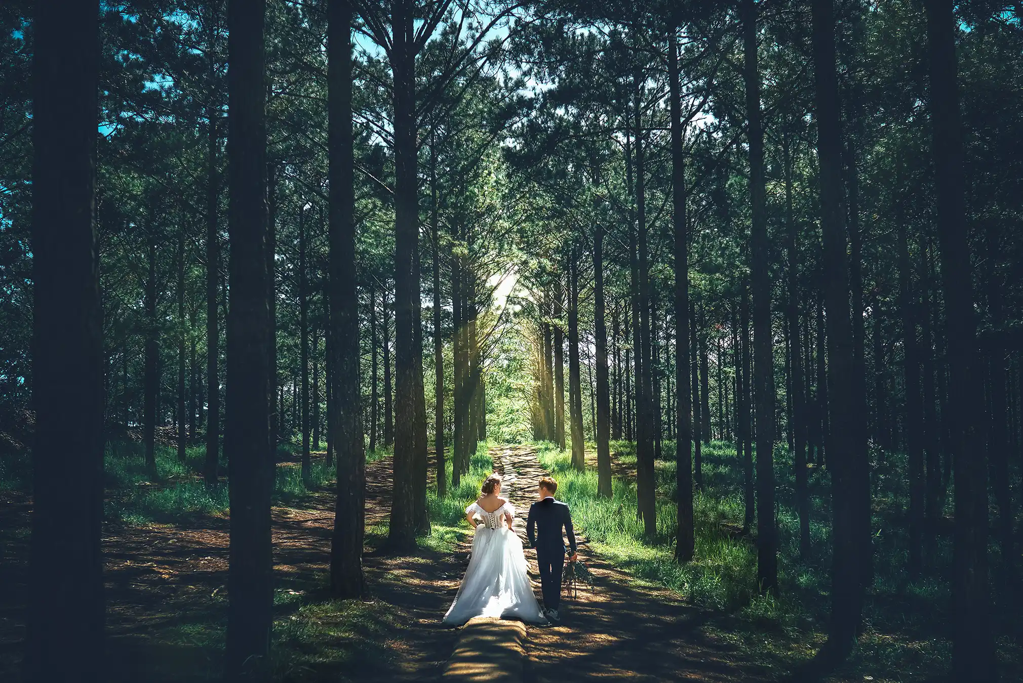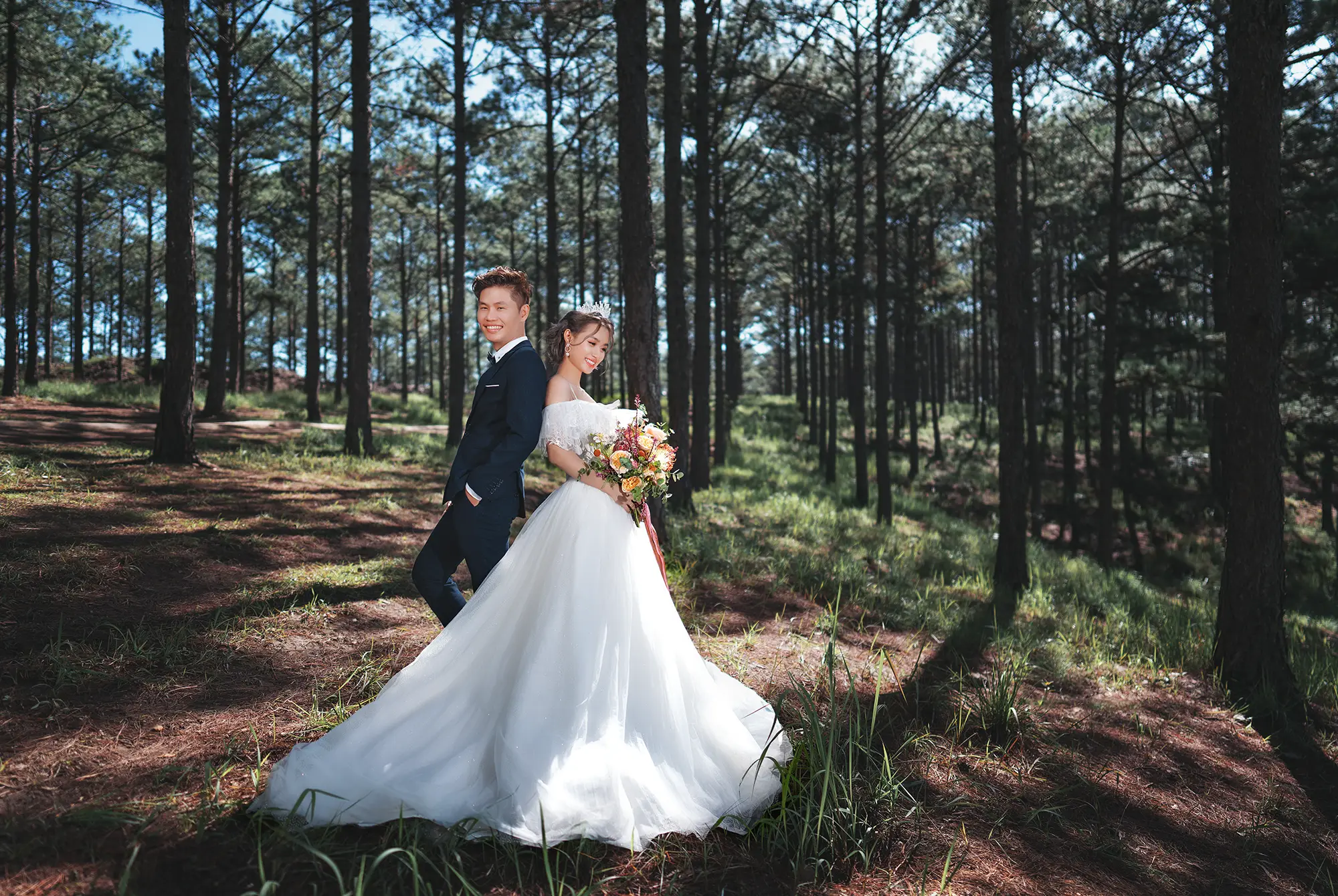 Cảnh nào ở Đà Lạt cũng đẹp khó diễn tả, ngoài hồ Tuyền lâm huyền thoại, có chút bí ẩn của những cánh rừng thông đại ngàn nơi phố núi. Rừng thông Đà Lạt khiến cho người ta nhớ mãi khi nhắc đến thành phố sương mù. Khung cảnh đẹp mộc mạc đến lạ thường, tạo cho ta cảm giác được hòa mình với thiên nhiên yên ả ngút ngàn. Tiếng gió thổi thông reo vi vu êm tai, thông già vươn cao tỏa bóng với cảm giác mát mẻ lặng người. Mỗi địa điểm chụp ảnh cưới đều cho chúng ta những bức ảnh đẹp thổi hồn khác nhau. Như khẳng định tình yêu của đôi lứa trường tồn, vững bền theo năm tháng.