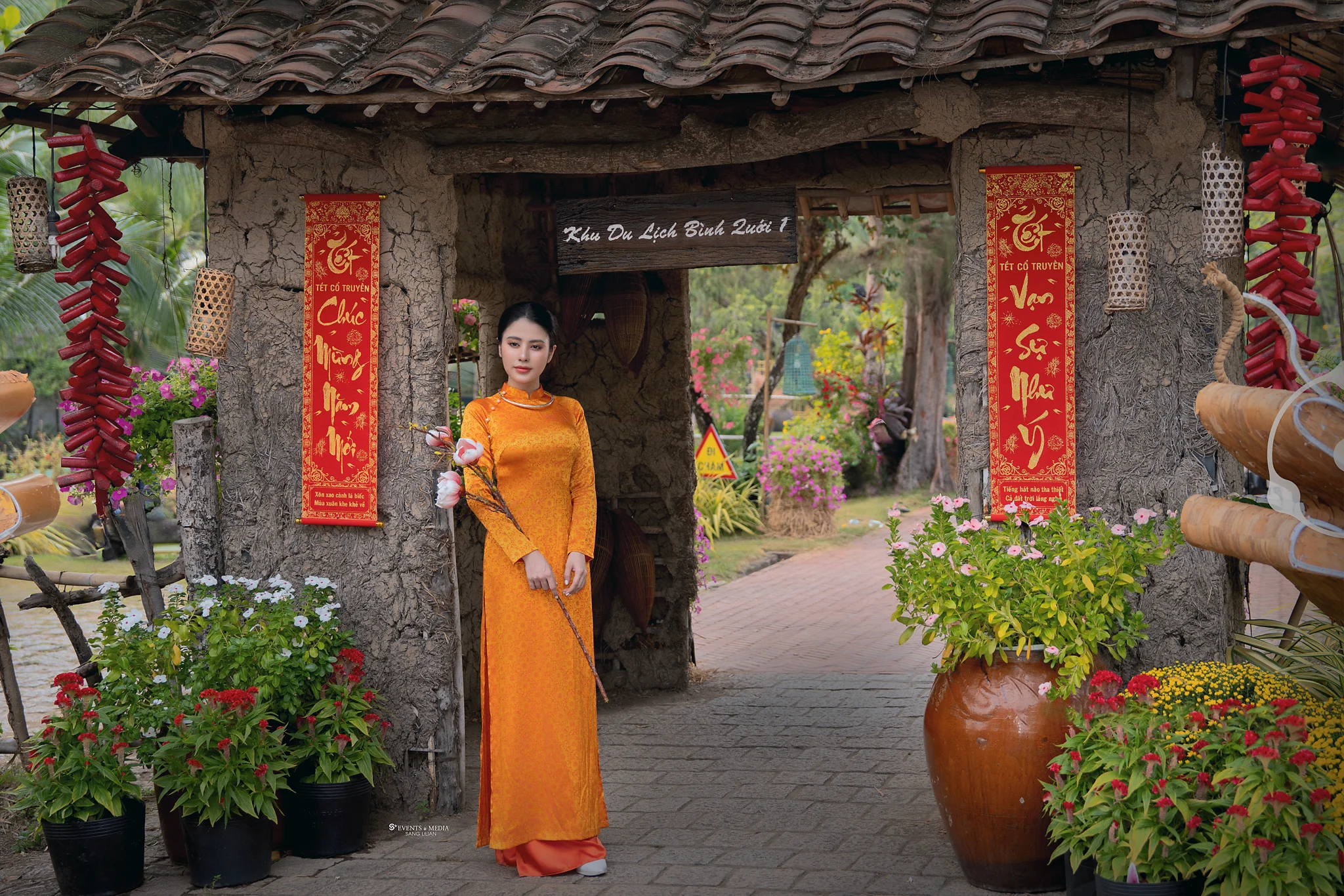 Gấm hoa tà áo dài lụa mịn màng và chất liệu gấm hoa sang trọng, hình ảnh người con gái trong bộ áo dài như một bức tranh sống động. Những hoa văn được thêu dệt công phu trên nền gấm, từng chi tiết sắc sảo và hài hòa mang lại vẻ lộng lẫy mà vẫn giữ được nét nhẹ nhàng, tự nhiên. Khi khoác lên mình chiếc áo dài gấm hoa, nét duyên dáng của người phụ nữ như được tôn thêm, khiến bao ánh mắt không thể rời. Từng đường nét áo dài ôm sát lấy cơ thể, khoe trọn bờ vai mềm mại và vòng eo thon gọn, nhưng vẫn giữ được sự kín đáo, thanh thoát của người phụ nữ Á Đông.