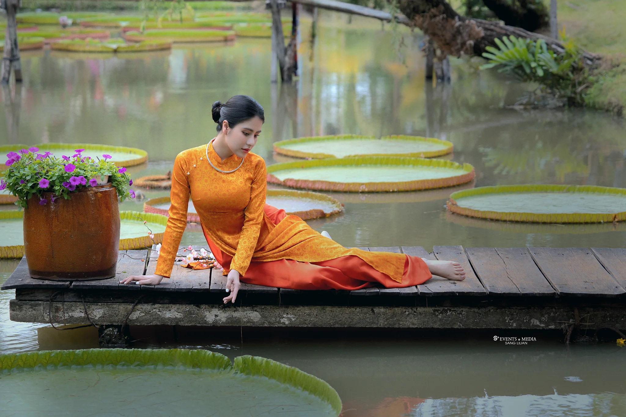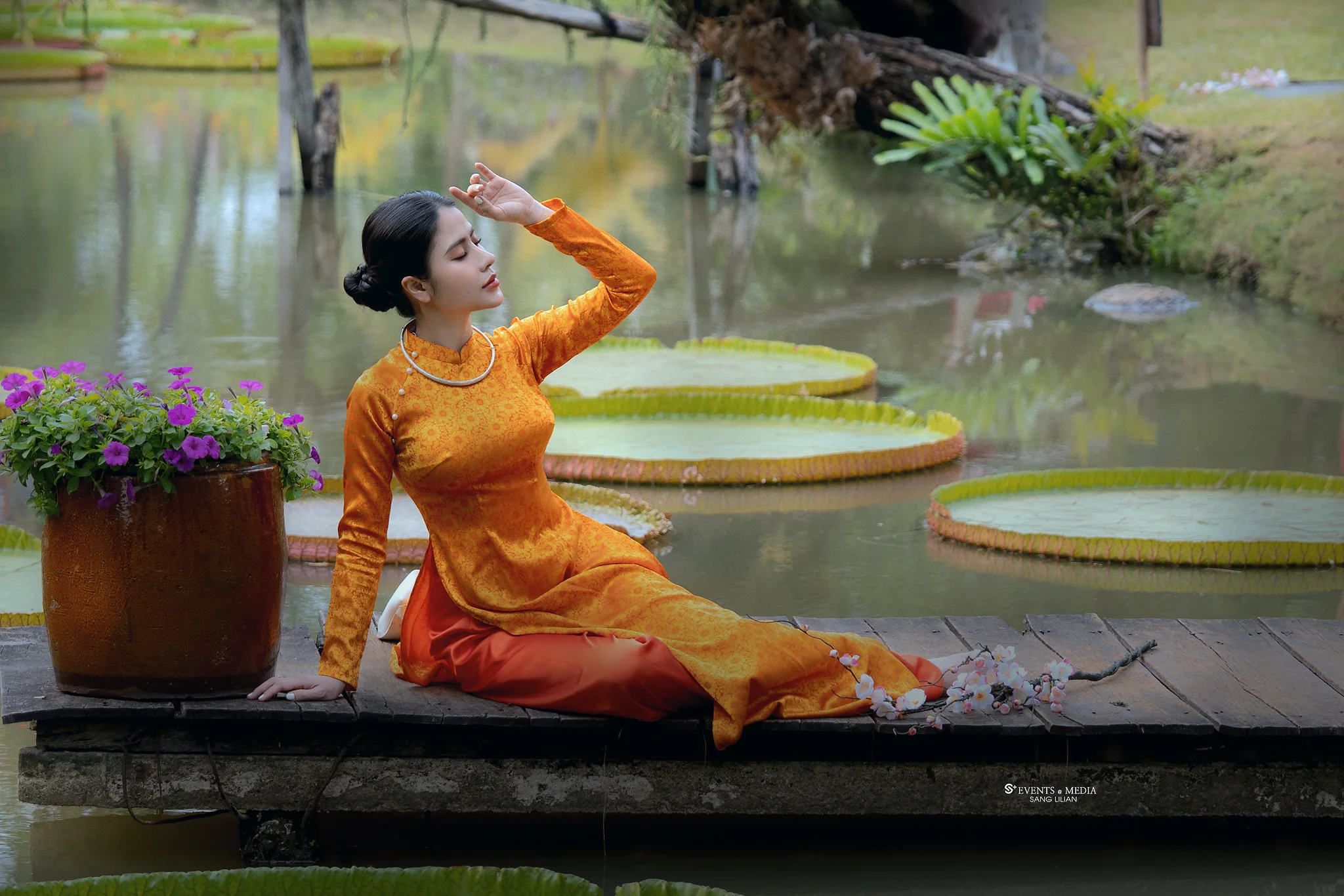 Áo dài lụa là gấm hoa còn chứa đựng cả sự tinh khôi và gợi cảm, một sự quyến rũ không phô trương nhưng lại chạm đến sâu trong tâm hồn. Dù là bước nhẹ nhàng qua từng phố xá hay dạo quanh một góc công viên, hình ảnh tà áo dài tung bay trong gió như một giai điệu êm dịu của sự nữ tính và sang trọng.
