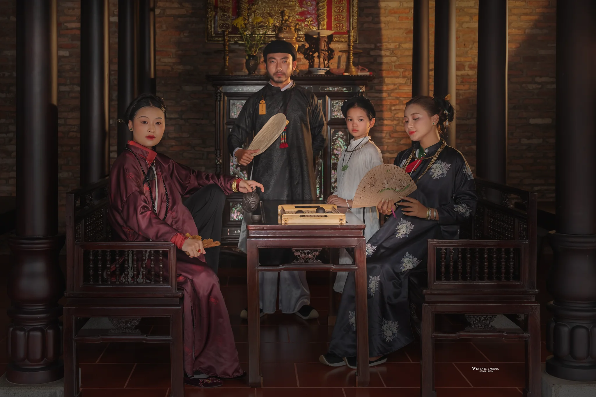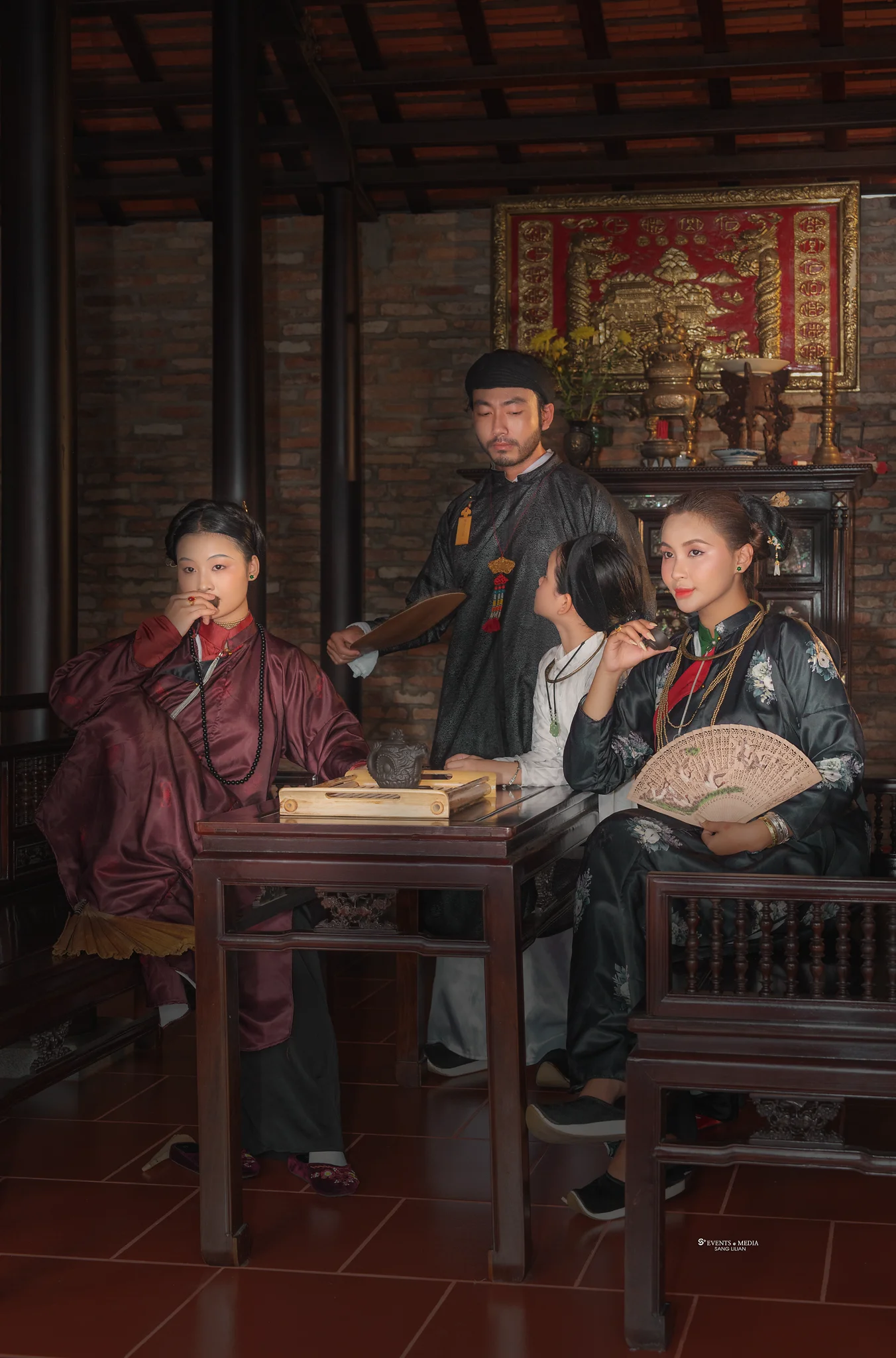 This photo series, inspired by the cinematic work of director Victor Vu, captures the intricate relationships within a polygamous household in feudal Vietnam. The images portray the delicate yet intense emotions of each wife, their interactions with one another, and their shared connection to their husband. With meticulous attention to costume and setting, the series brings to life the era’s atmosphere, evoking the complex tapestry of love, duty, and rivalry that characterized such households.