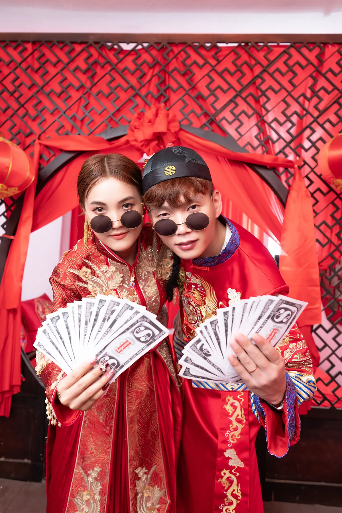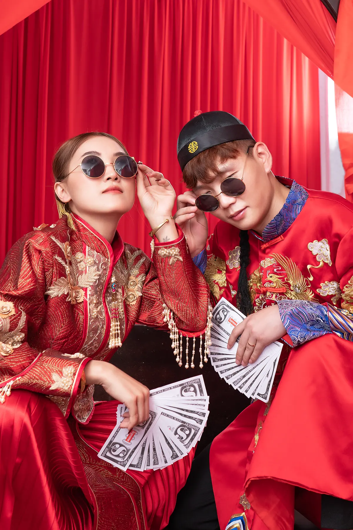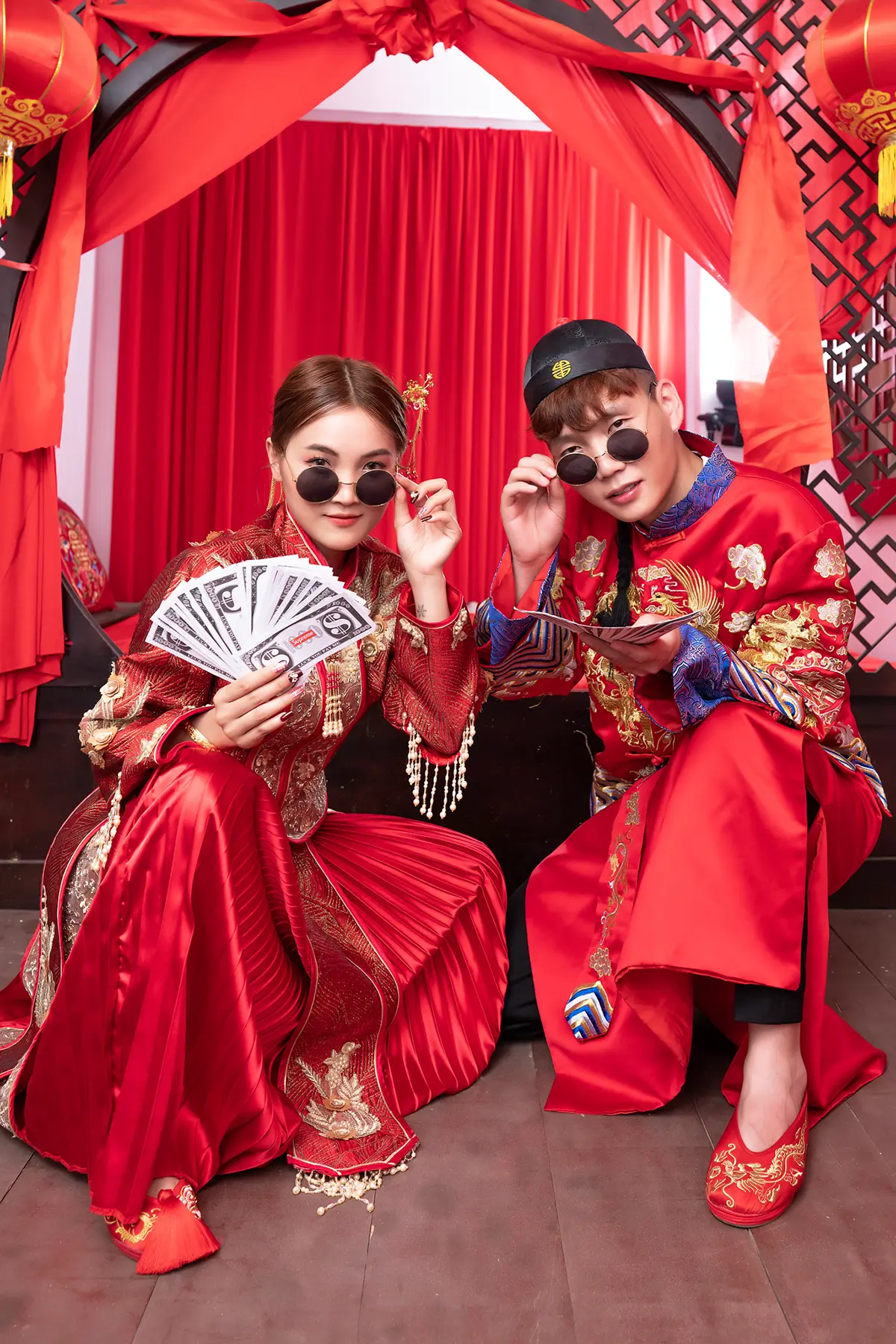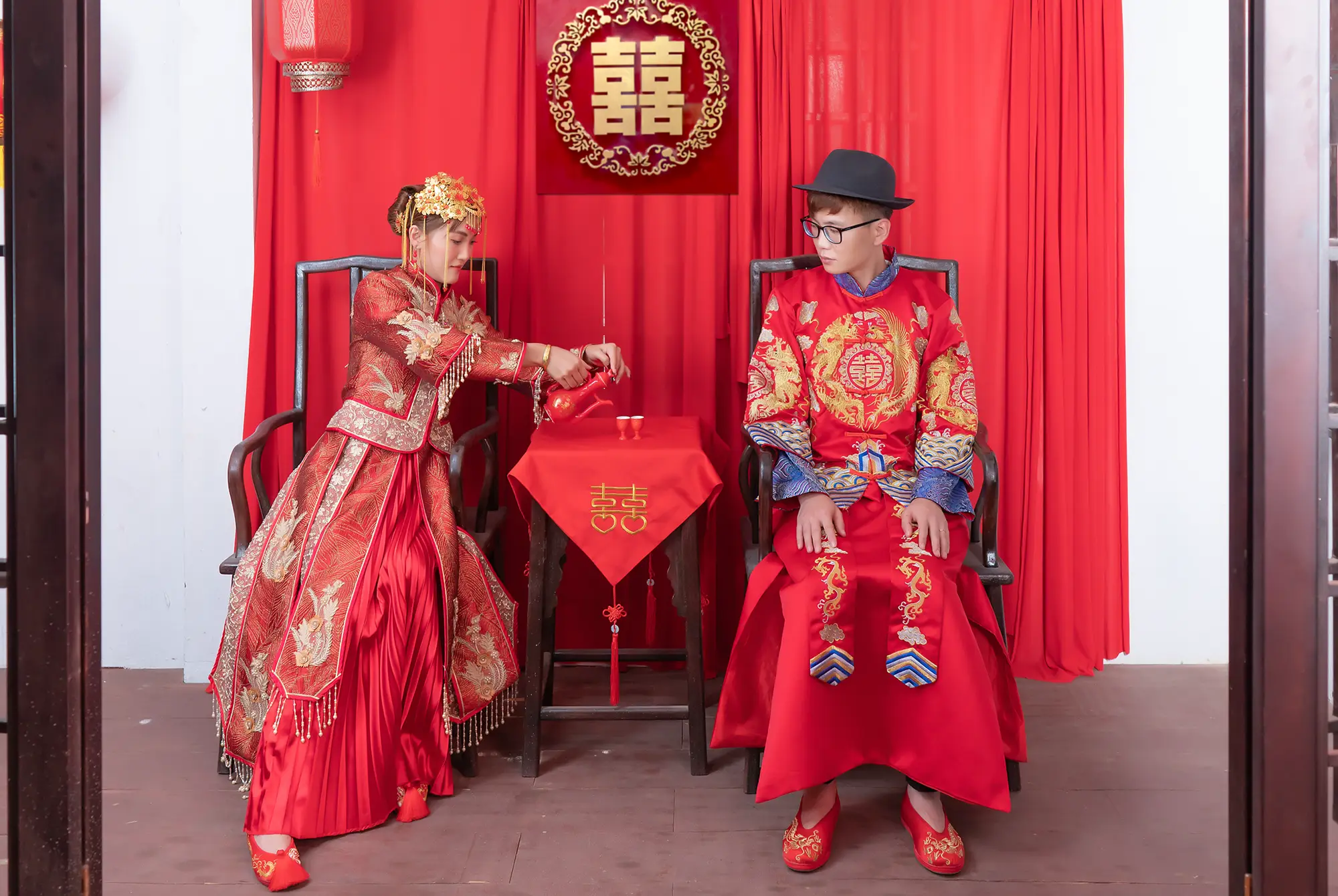 Each pose is crafted to bring out their personalities, from shy glances to bursts of laughter, capturing the essence of their relationship. Set against a background resembling an old-fashioned Chinese bridal chamber, complete with classic furnishings and a warm, nostalgic atmosphere, the photos blend romance and humor seamlessly. The result is an album that’s not only beautiful and memorable but also uniquely theirs—full of life, laughter, and love, just like the journey they’re about to begin together.
